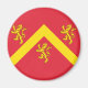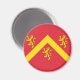 Magnet with design with a flag of historic county of Anglesey, in Wales, Great Britain;; red flag with yellow chevron and three lions;