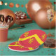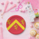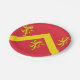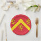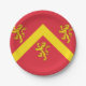 Paper plate with design with a flag of historic county of Anglesey, in Wales, Great Britain;; red flag with yellow chevron and three lions;