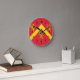 Wall Clock with design with a flag of historic county of Anglesey, in Wales, Great Britain;; red flag with yellow chevron and three lions;