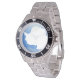 Has heft and feel of expensive stainless steel quartz watches. Good band with safety catch. I removed links, which is easy because engraved arrows show direction to push the linking pins. As always by this seller, the image (a railroad logo) is a perfect reproduction of my emailed image, and is precisely spaced and aligned.
