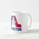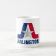 Mug with the flag of Arlington, Texas. A white flag with a blue and red letter A and a silver star in the centre
