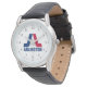 Watch with the flag of Arlington, Texas. A white flag with a blue and red letter A and a silver star in the centre