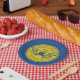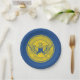 Paper Plate with flag of city of Atlanta, Georgia; blue flag with yellow seal with an illustration of phoenix rising from flames