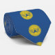 Tie with flag of city of Atlanta, Georgia; blue flag with yellow seal with an illustration of phoenix rising from flames