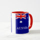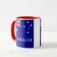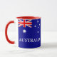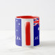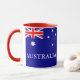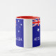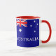 White and red 11 oz. ringer combo mug with an image, on both sides, of the flag of Australia.