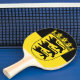 Ping pong paddle with variant flag of Baden-Württemberg; design with two horizontal bands of black and yellow (golden), and emblem with shield with three black lions in the centre