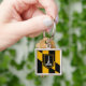 Square Keychain with flag of city of Baltimore, Maryland; black and yellow flag with an illustration of Battle Monument