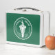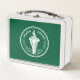 Metal Lunchbox with design with flag of Bangkok, capital city of Kingdom of Thailand; green flag with white illustration of an elephant in the centre