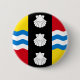 Round Button with design with a flag of historic county of Bedfordshire, in England, Great Britain; red and gold flag with black vertical band with tree white scallops in the center