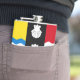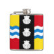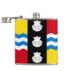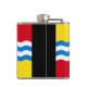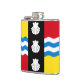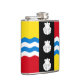 Vinyl wrapped flask with design with a flag of historic county of Bedfordshire, in England, Great Britain; red and gold flag with black vertical band with tree white scallops in the centre