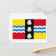 Postcard with a flag of historic county of Bedfordshire, in England, Great Britain; red and gold flag with black vertical band with tree white scallops in the centre