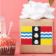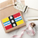 Sticker with design with a flag of historic county of Bedfordshire, in England, Great Britain; red and gold flag with black vertical band with tree white scallops in the centre