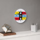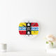 Wall Clock with a flag of historic county of Bedfordshire, in England, Great Britain; red and gold flag with black vertical band with tree white scallops in the centre