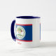 The flag of Belise is a continued version of the earlier flag of British Honduras (the name of Belise during the British colonial period). British Honduras obtained a coat of arms on January 28, 1907, which formed the basis of the badge used on British ensigns. The coat of arms recalls the logging industry that first led to British settlement there. The figures, tools, and mahogany tree represent this industry. From 1950 onward an unofficial national flag was in use. It was blue, with a modified version of the arms on a white disc in the centre (sometimes a blank white circle was used as the coat of arms was difficult to draw). The national motto, Sub Umbra Floreo, meaning “I Flourish in the Shade”, is written in the lower part of the coat of arms.