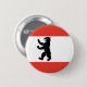 Round Button with flag of Berlin, state flag with horizontal stripes of red and white, with an illustration of a black bear in the centre