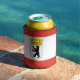 Can cooler with variant flag of Berlin, state flag with horizontal stripes of red and white, with an illustration of a black bear inside a shield with a crown