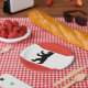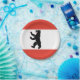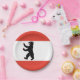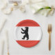 Paper plate with flag of Berlin, state flag with horizontal stripes of red and white, with an illustration of a black bear in the centre