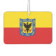 Air Freshener with design with flag of Bogota, capital city of Colombia, red and yellow flag with coat of arms with eagle in the centre