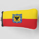 Golf putter cover with design with flag of Bogota, capital city of Colombia, red and yellow flag with coat of arms with eagle in the centre