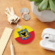 Keychain with design with flag of Bogota, capital city of Colombia, red and yellow flag with coat of arms with eagle in the centre