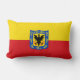 Lumbar Pillow with design with flag of Bogota, capital city of Colombia, red and yellow flag with coat of arms with eagle in the centre