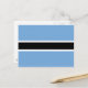 The national flag of Botswana was adopted on September 30, 1966. The flag is light blue with a black horizontal band across the centre, with white fimbriation. The stripes are in a ratio of 9:1:4:1:9. The blue colour stands for water, specifically rain, and comes from the motto on the Botswana coat-of-arms, which states Pula, the Setswana word for "Let there be rain". The white and black bands stand for racial harmony, and also refer to the zebras that support the nation's coat of arms.