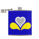 Vinyl wrapped flask with design with flag of Brussels-Capital Region of Belgium, blue flag with yellow, grey and white iris