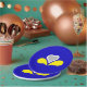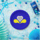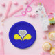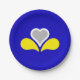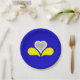 Paper plate with design with flag of Brussels-Capital Region of Belgium, blue flag with yellow, grey and white iris