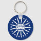 Button Keychain with flag of city of Buffalo, New York; blue flag with white seal of the city and 13 lightning bolts