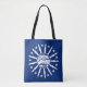 Tote bag with flag of city of Buffalo, New York; blue flag with white seal of the city and 13 lightning bolts