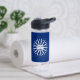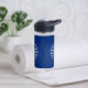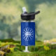 Water Bottle with flag of city of Buffalo, New York; blue flag with white seal of the city and 13 lightning bolts