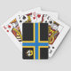 Poker playing cards with design with a flag of historic county of Caithness, in Scotland, Great Britain; black flag with blue and yellow Nordic cross and an illustration of a ship with a raven on its sail in the upper hoist