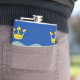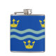Vinyl wrapped flask with design with a flag of historic county of Cambridgeshire, in England, Great Britain; blue flag with three golden crowns and two waves