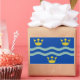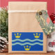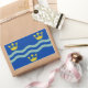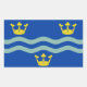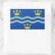 Sticker with design with a flag of historic county of Cambridgeshire, in England, Great Britain; blue flag with three golden crowns and two waves