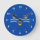 Wall Clock with design with a flag of historic county of Cambridgeshire, in England, Great Britain; blue flag with three golden crowns and two waves
