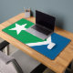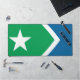 Desk Mat with a design with a design with the flag of Cedar Rapids, Iowa. A green and blue flag with a white star