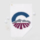 Golf towel with a design with the flag of Chandler, Arizona. A white flag with a seal in the centre