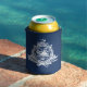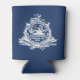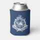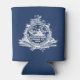 Can cooler with flag of Charleston, South Carolina; blue flag with seal of the city