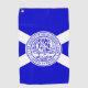 Golf Towel with one of the two official flags of Charlotte, North Carolina. A blue flag with a white saltire (Saint Andrew’s Cross) and a seal