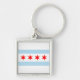 Square Keychain with flag of city of Chicago (largest city in Illinois), white and light blue striped flag with four red stars