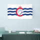 This design features the flag of Cincinnati, which is a major city in the U.S. state of Ohio and the government seat of Hamilton County. Cincinnati was settled in 1788, and the city is located at the northern side of the confluence of the Licking and Ohio rivers, the latter of which marks the state line with Kentucky. The city is the economic and cultural hub of the Cincinnati metropolitan area, one of the fastest growing economic centres in the Midwestern United States. The flag of Cincinnati includes the Latin motto "Juncta Juvant", which means "United, we help each other".