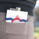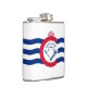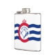Vinyl wrapped flask with flag of city of Cincinnati, Ohio; white flag with three blue waves with red “C” in the center