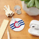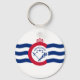 Button Keychain with flag of city of Cincinnati, Ohio; white flag with three blue waves with red “C” in the centre