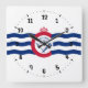 Clock with flag of city of Cincinnati, Ohio; white flag with three blue waves with red “C” in the centre