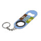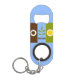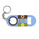 Bottle Opener with flag of Fresno, California; flag with three vertical bands of brown, blue and green, with stylised illustrations of cog, plant and sun