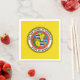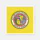 Paper napkin with flag of Honolulu, Hawaii; yellow flag with charged with seal of Honolulu