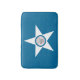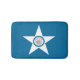 Bath mat with flag of Houston, Texas; blue flag with seal of Houston in a white star, with an illustration of a train