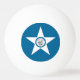 Ping pong ball with flag of Houston, Texas; blue flag with seal of Houston in a white star, with an illustration of a train