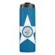 Tumbler with flag of Houston, Texas; blue flag with seal of Houston in a white star, with an illustration of a train
