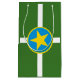 Paper bag with flag of Jackson, Mississippi; green flag with yellow star in a blue circle